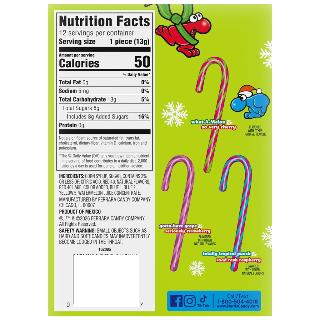 MAKE SWEET MEMORIES – Includes 12 individually wrapped fruity Nerds candy canes, perfect for spreading joy during the festive season.